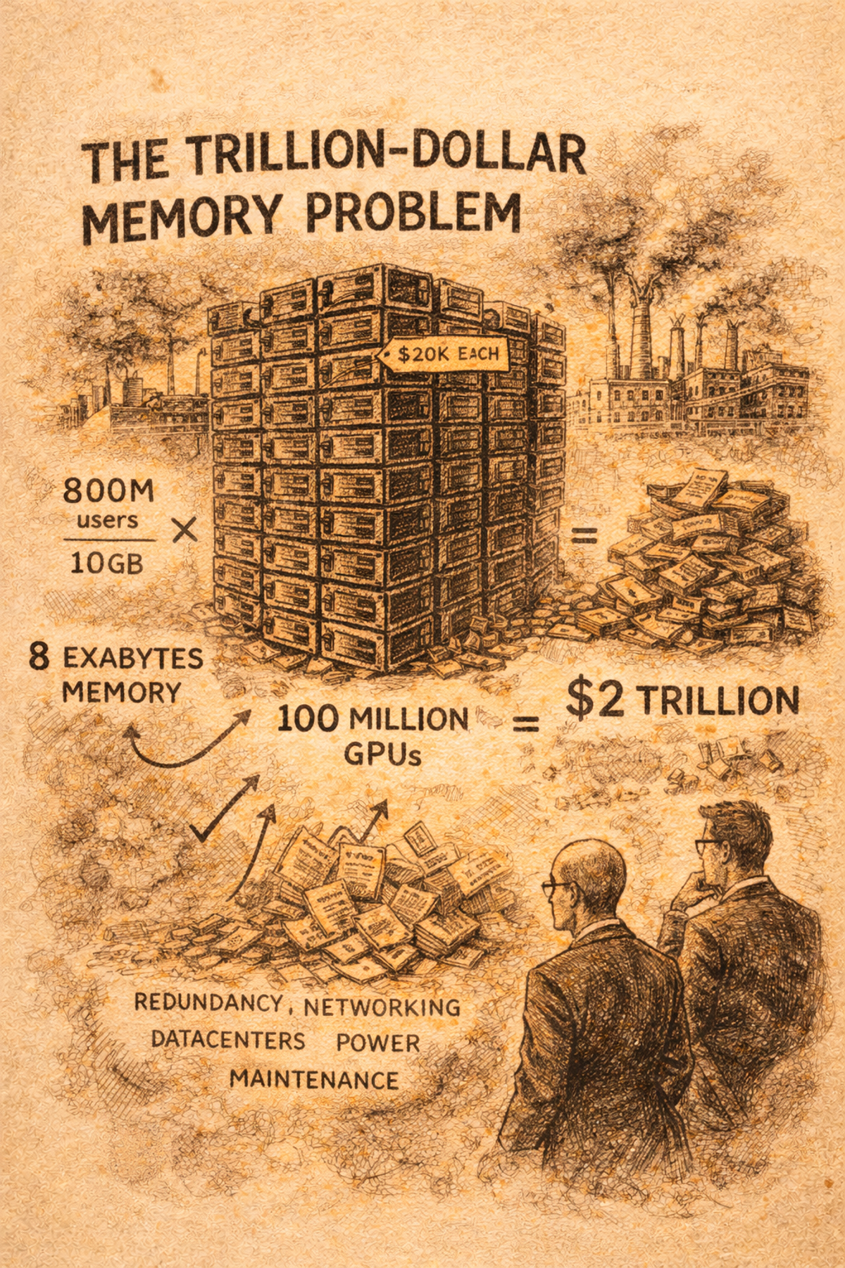 This is why people who actually run the numbers land on the same conclusion: true AI memory at ChatGPT scale is a trillion-dollar problem, not a feature tweak.